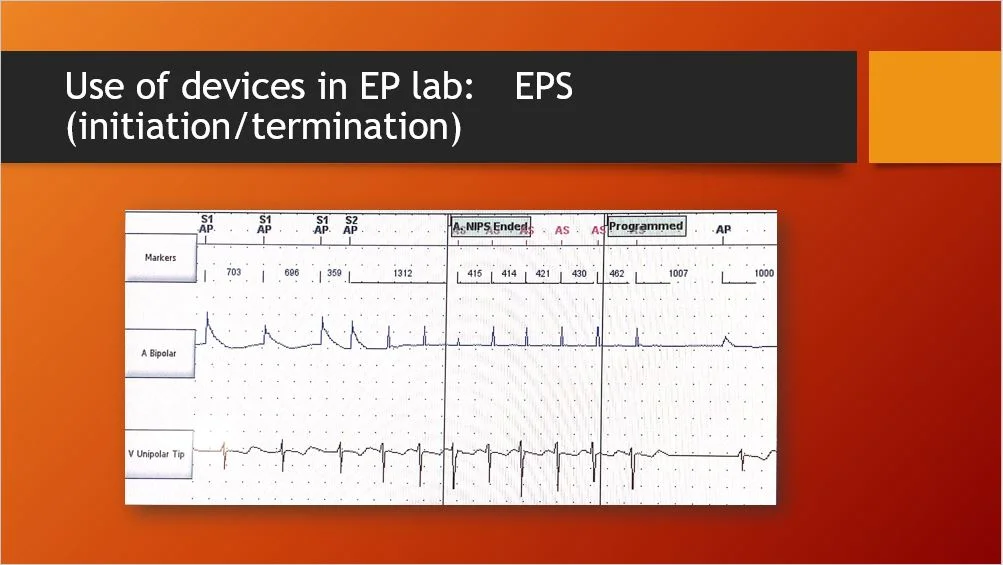Now, this patient has a device with an atrial electrode and a ventricular electrode, and these devices have the capacity to do basic EP studies without any further invasive procedures. So we can use this device alone to further our understanding of the patient’s needs, with none of the risks or costs associated with traditional EPS.